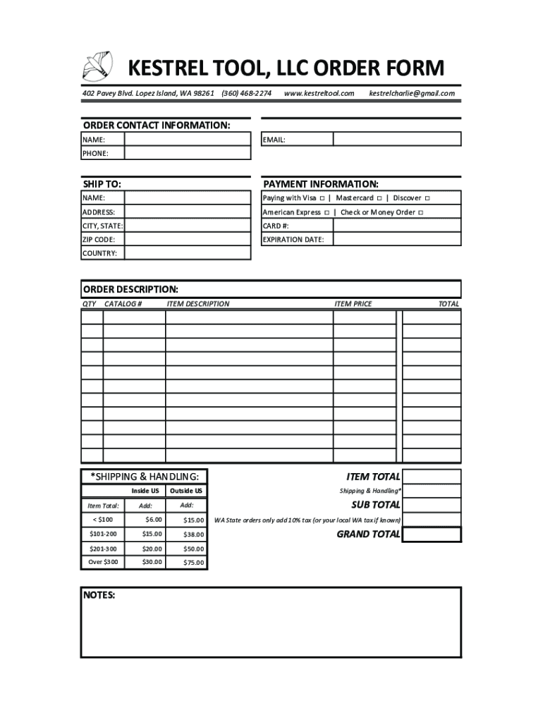 Get the free KESTREL TOOL, LLC ORDER FORM - Squarespace