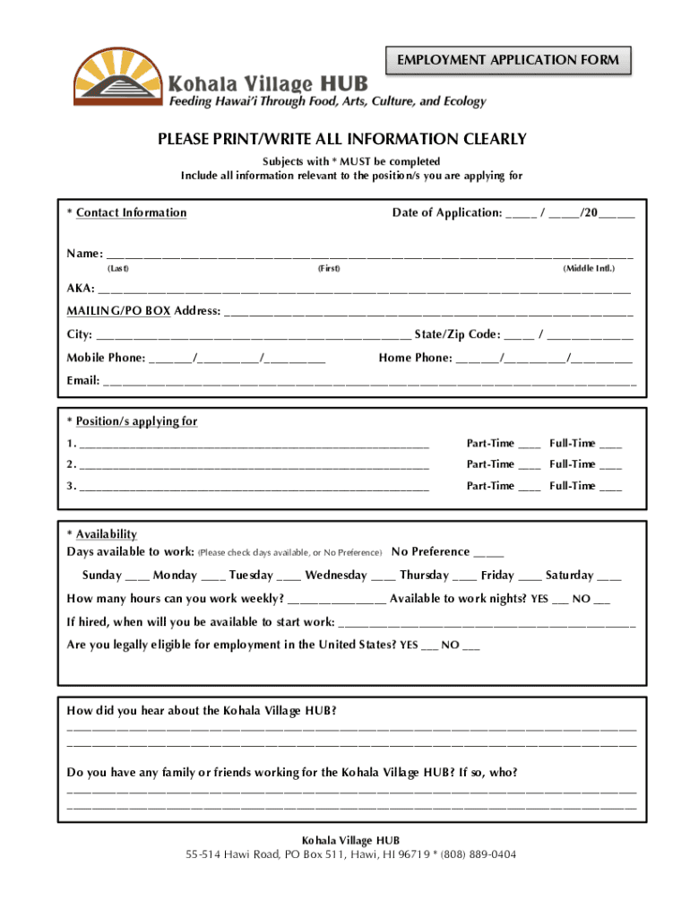 EMPLOYMENT APPLICATION FORMULAS PRINT/WRITE ALL INFORMATION CLEARLY Subjects with * MUST be completed Include all information relevant to the position/s you are applying for* Contact Informational