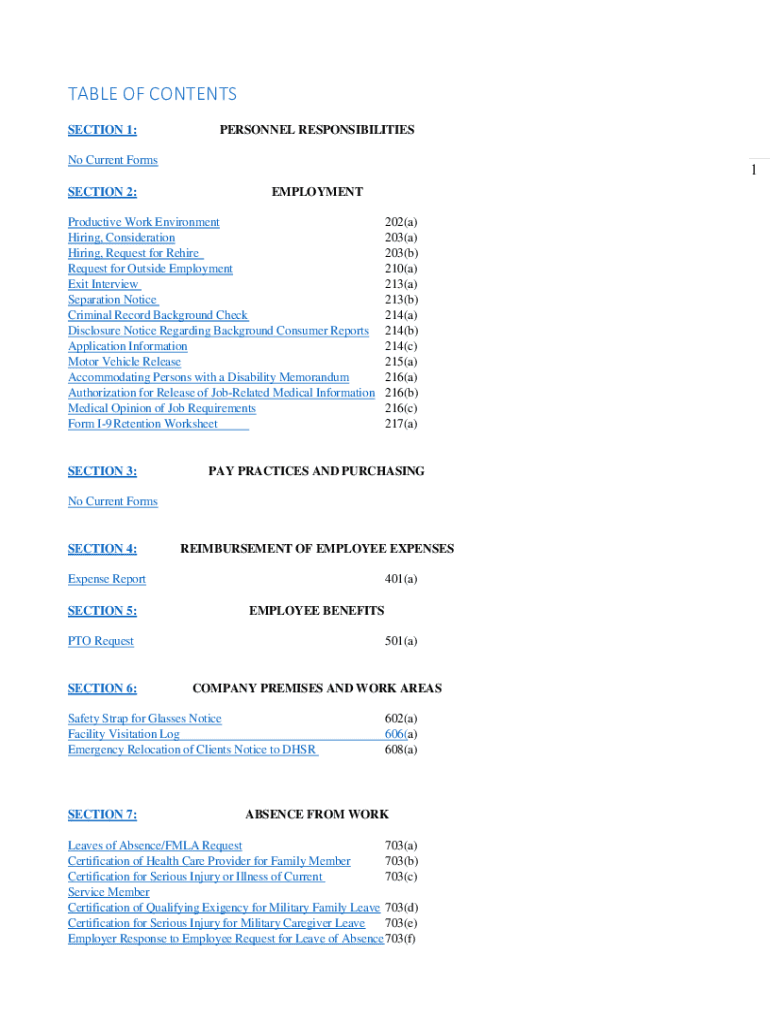 SECTION 1:PERSONNEL RESPONSIBILITIES No Current Forms