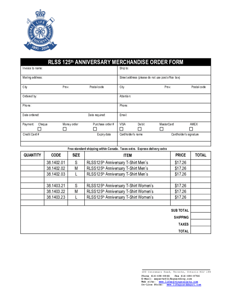 Get the free RLSS 125th ANNIVERSARY MERCHANDISE ... - Lifesaving Society