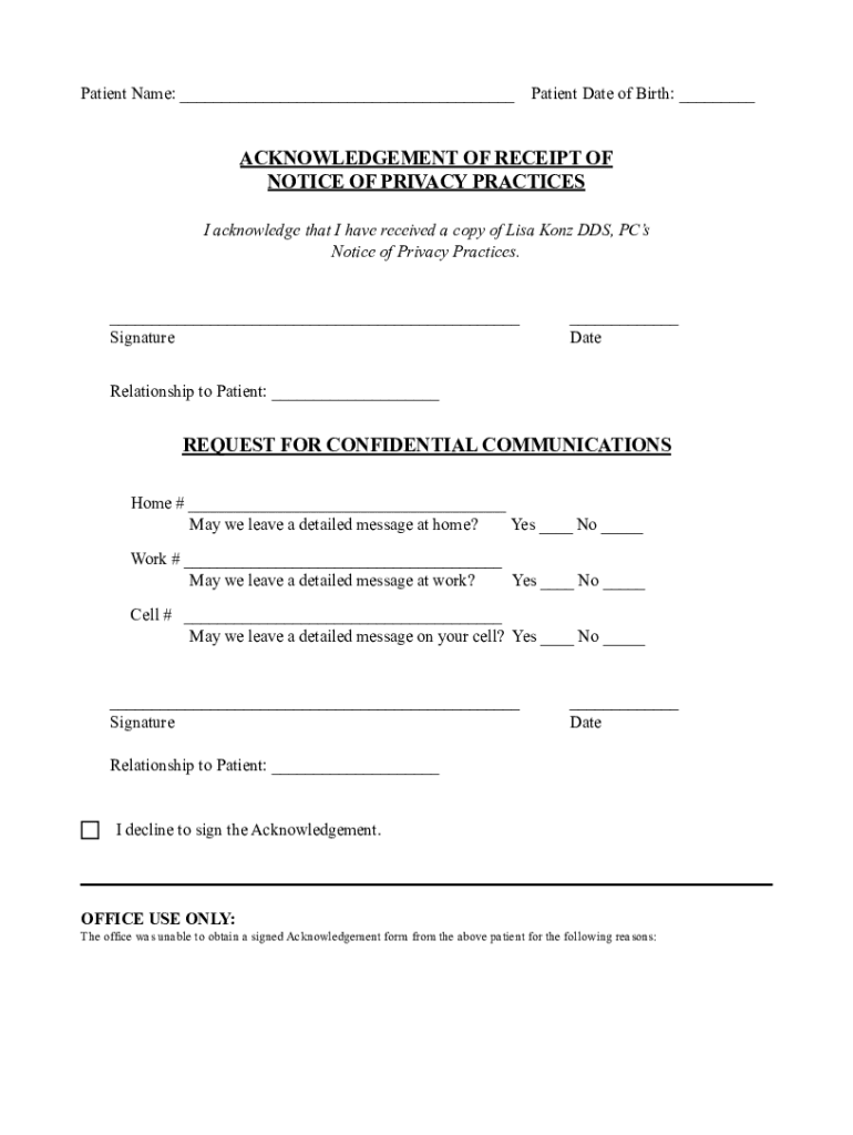 How to fill out np-forms-hipaa-patients-acknowledgement-konz