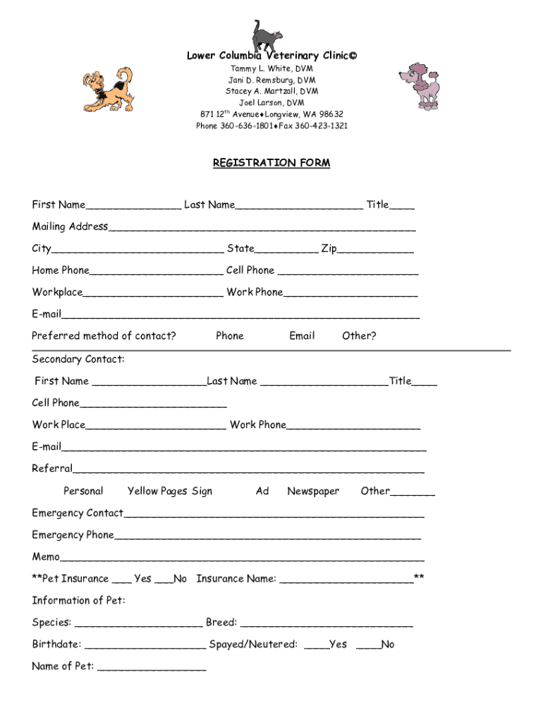 Get the free PDF Lower Columbia Veterinary Clinic REGISTRATION FORM First ...