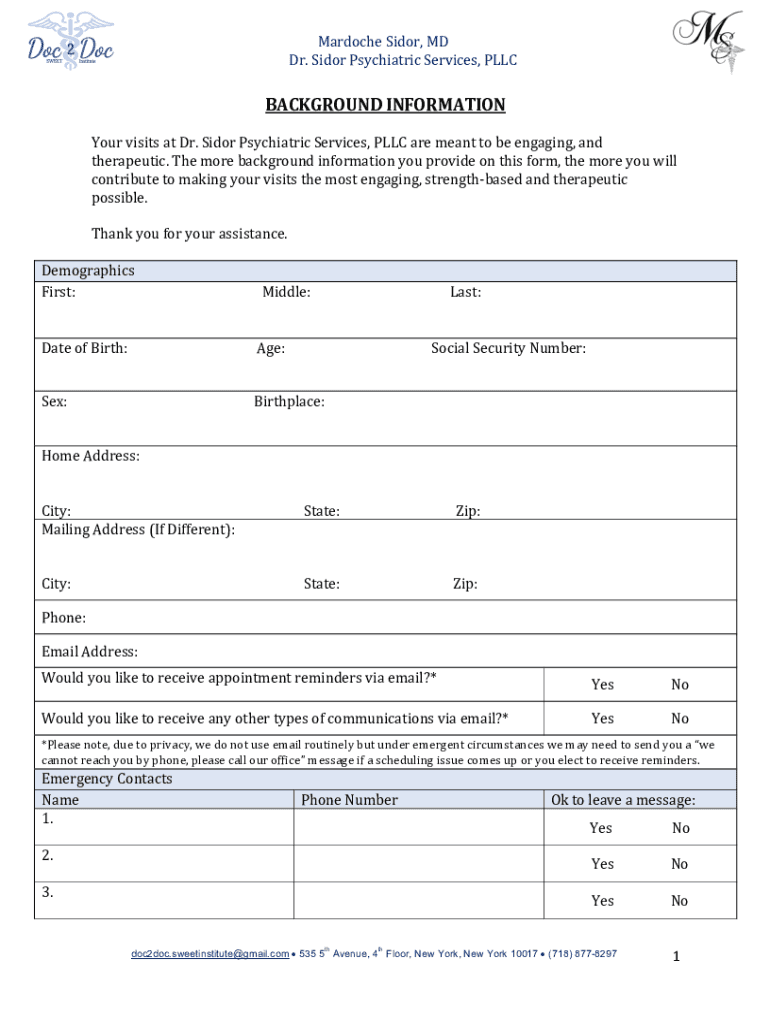 Get the free Dr. Mardoche Sidor, MDDr. Sidor Psychiatric Services, PLLC ...