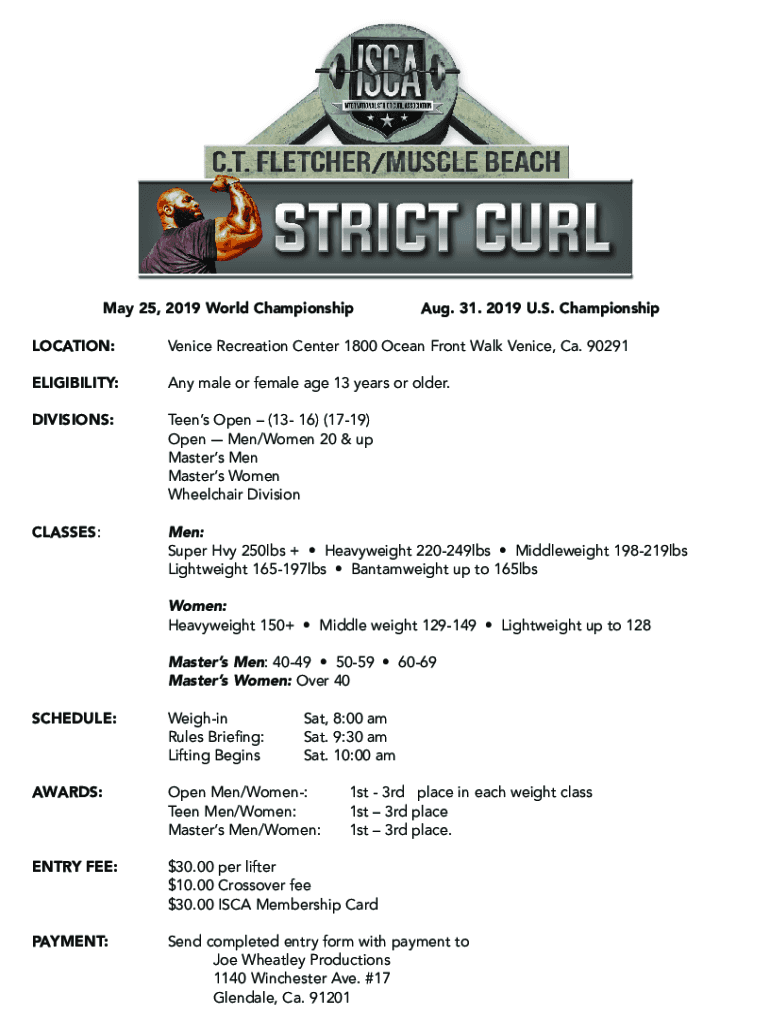 May 25, 2019, World Championship Aug. 31. 2019 U.S. ChampionshipLOCATION:Venice Recreation Center 1800 Ocean Front Walk Venice, Ca. 90291ELIGIBILITY:Any male or female age 13 years or older.DIVISIONS:Teens