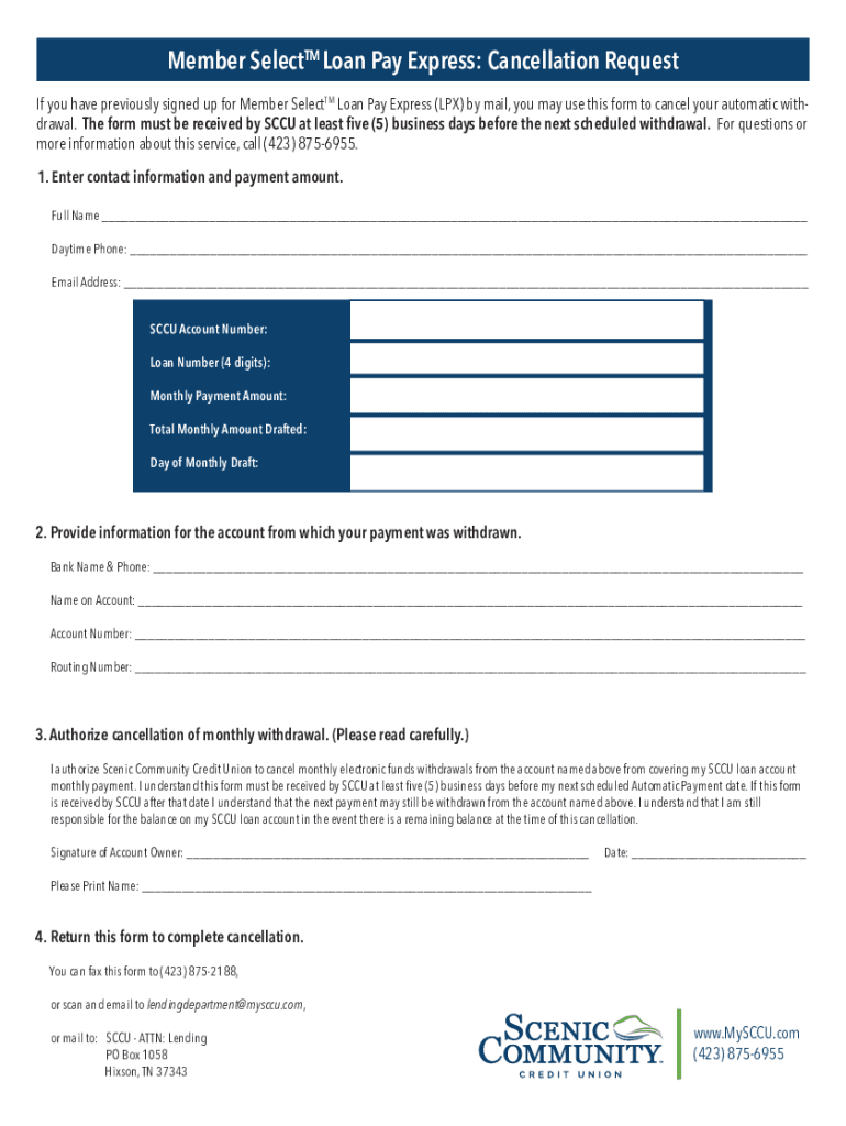 Get the free Member SelectTM Loan Pay Express: Cancellation Request