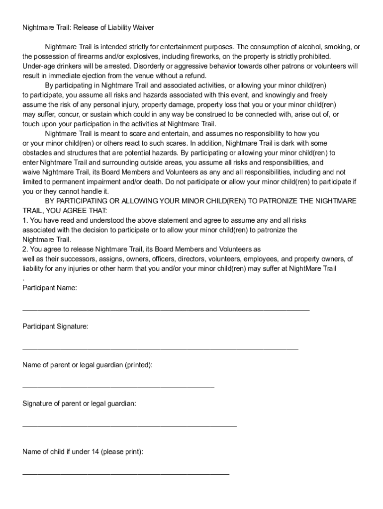 Get the free Nightmare Trail: Release of Liability Waiver