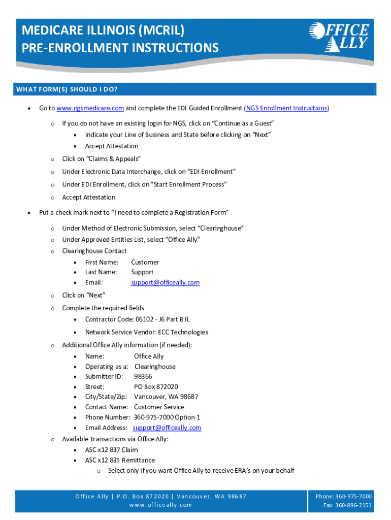 MEDICARE ILLINOIS (MCR IL) ENROLLMENT INSTRUCTIONS WHAT FORM(S) SHOULD I DO? Go to www.ngsmedicare.com and complete the EDI Guided Enrollment (NGS Enrollment Instructions) of you do not have an existing