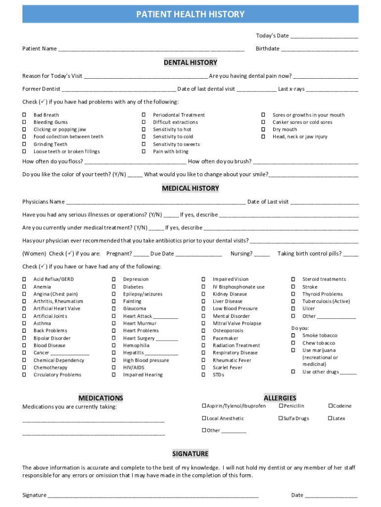 Patients visiting a new doctor or healthcare facility will typically need to fill out a health history form.