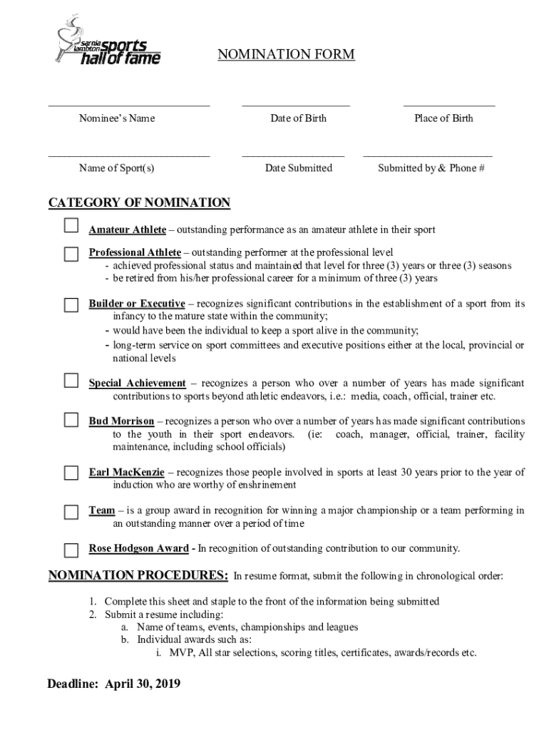 Fill out your nomination forms templateonline nomination online with pdfFiller!