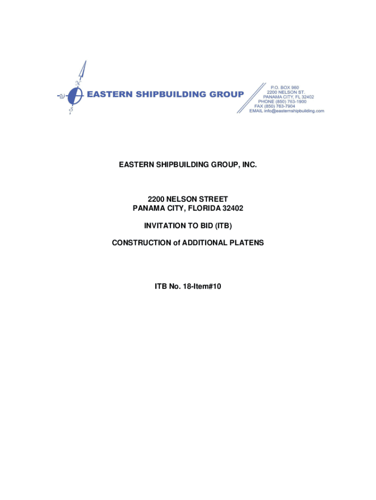 CONSTRUCTION of ADDITIONAL PLATENS ITB No. 18Item#10TABLE OF CONTENTS