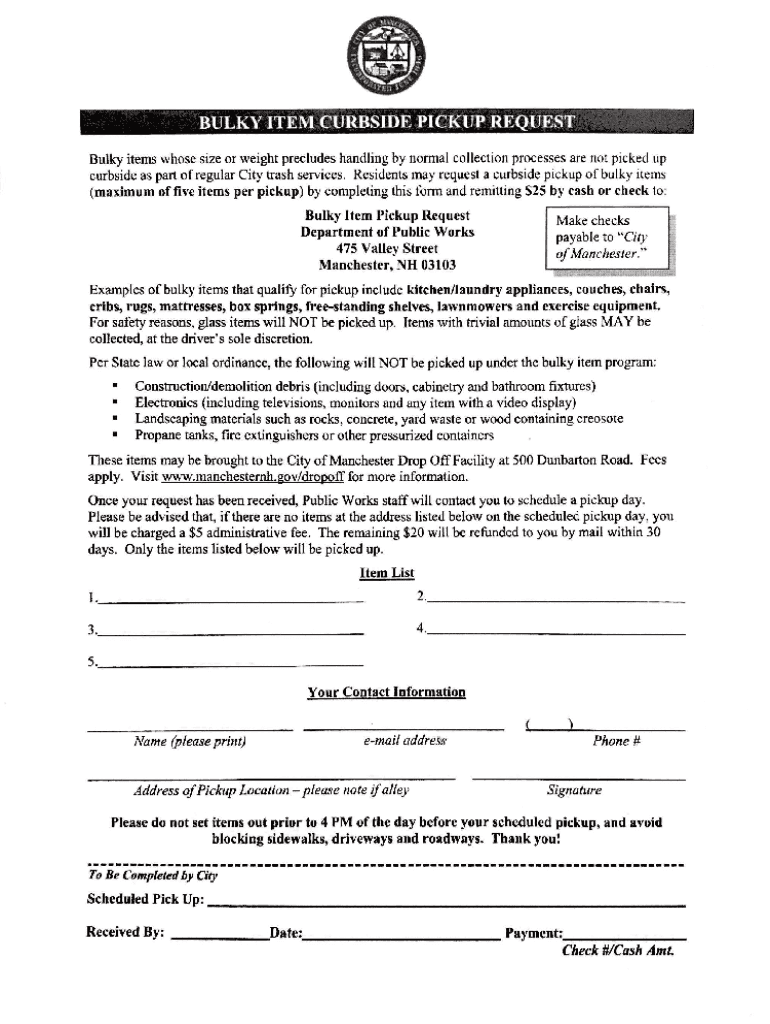 Fill out your bulky item curbside pickup online with pdfFiller!