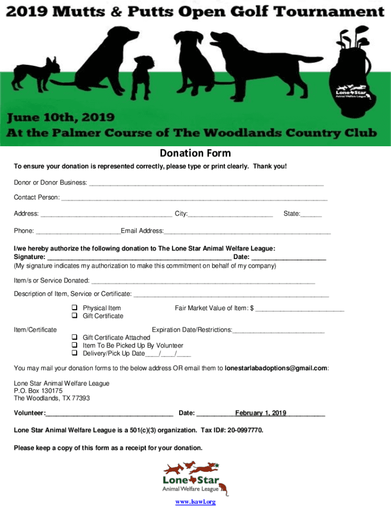 Donation Form To ensure your donation is represented correctly, please type or print clearly. Thank you! Donor or Donor Business: Contact Person: Address: City: State: Phone: Email Address: I/we hereby