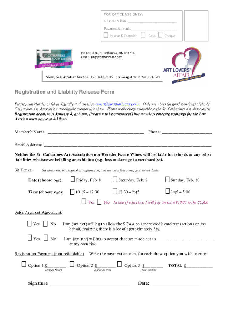 FOR OFFICE USE ONLY:Sit Time & Date: Payment Amount: Interact ETransferCashChequePO Box 5016, St. Catharines, ON L2R 7T4 Email: info stcatharinesart. Somehow, Sale & Silent Auction: Feb. 810, 2019Evening