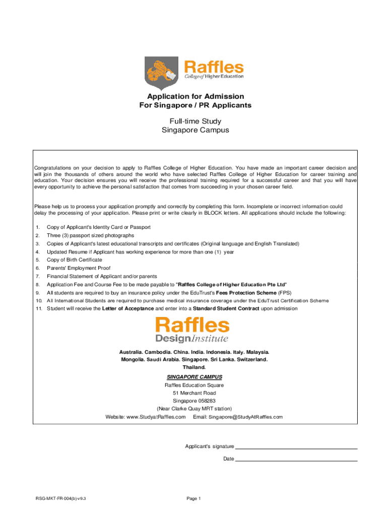 Get the free Application for Admission For Singapore / PR Applicants Full ...
