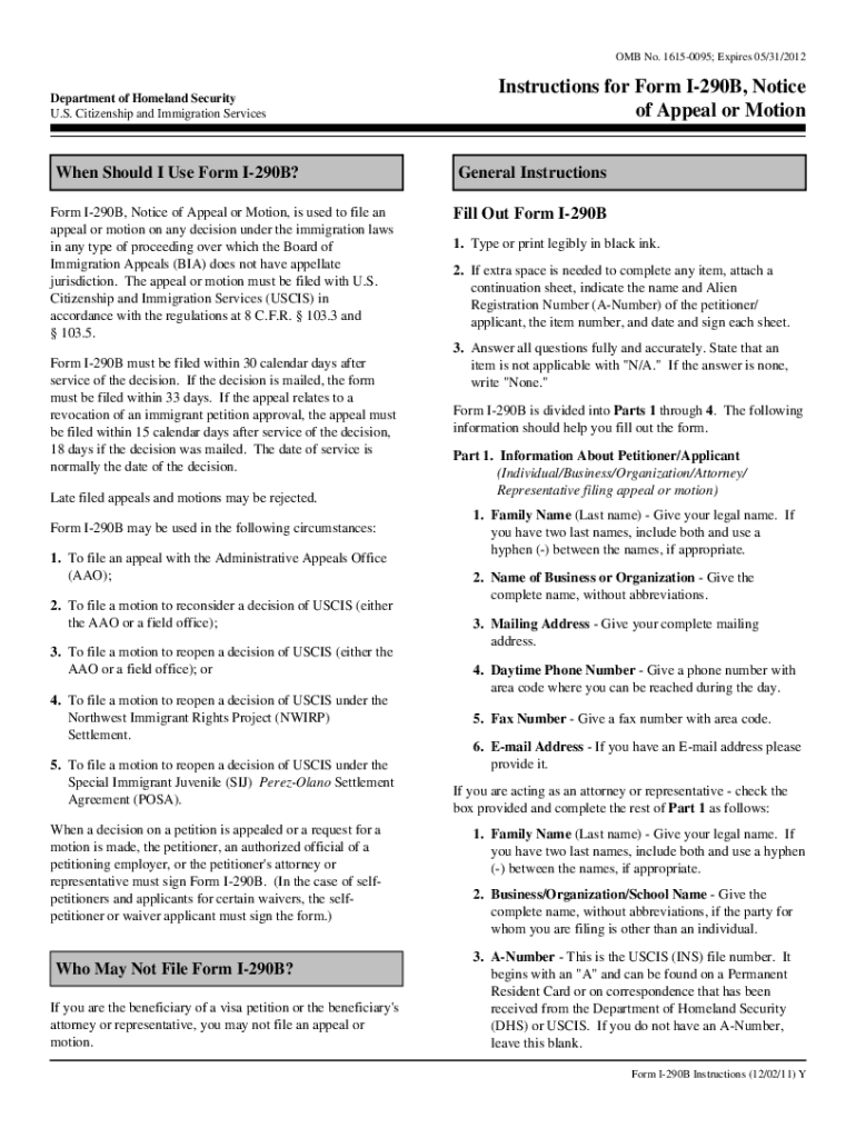U.S. Citizenship and Immigration Servicemen Should I Use Form I290B?
