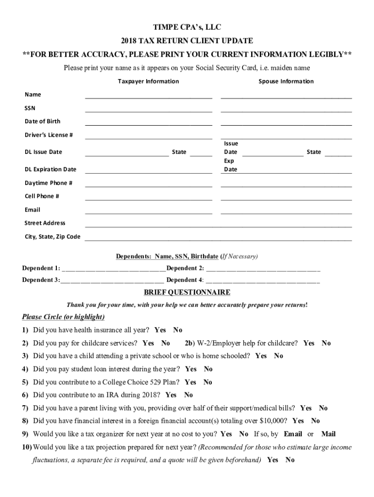 2018 TAX RETURN CLIENT UPDATE