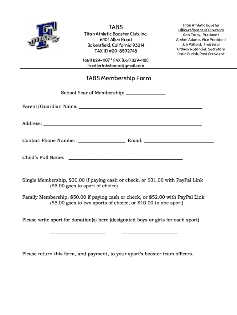 How to fill out titan athletic booster club?