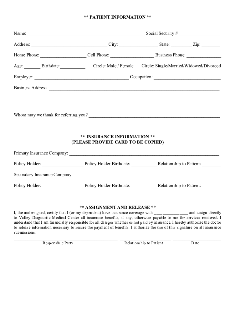 If applicable, fill in insurance information and provide details about the primary care physician.