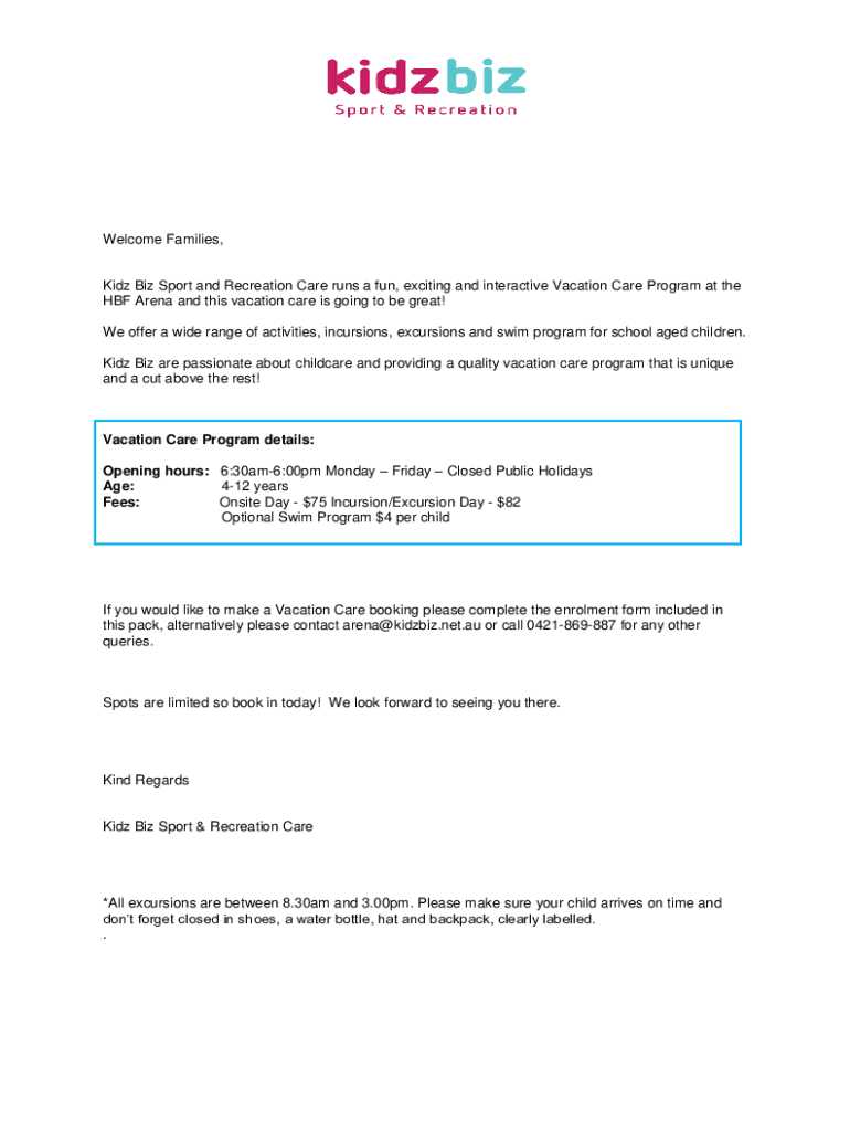 Welcome Families, Kids Biz Sport and Recreation Care runs a fun, exciting and interactive Vacation Care Program at the HBO Arena and this vacation care is going to be great! We offer a wide range