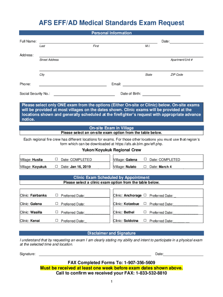 AFS EFF/AD Medical Standards Exam Request