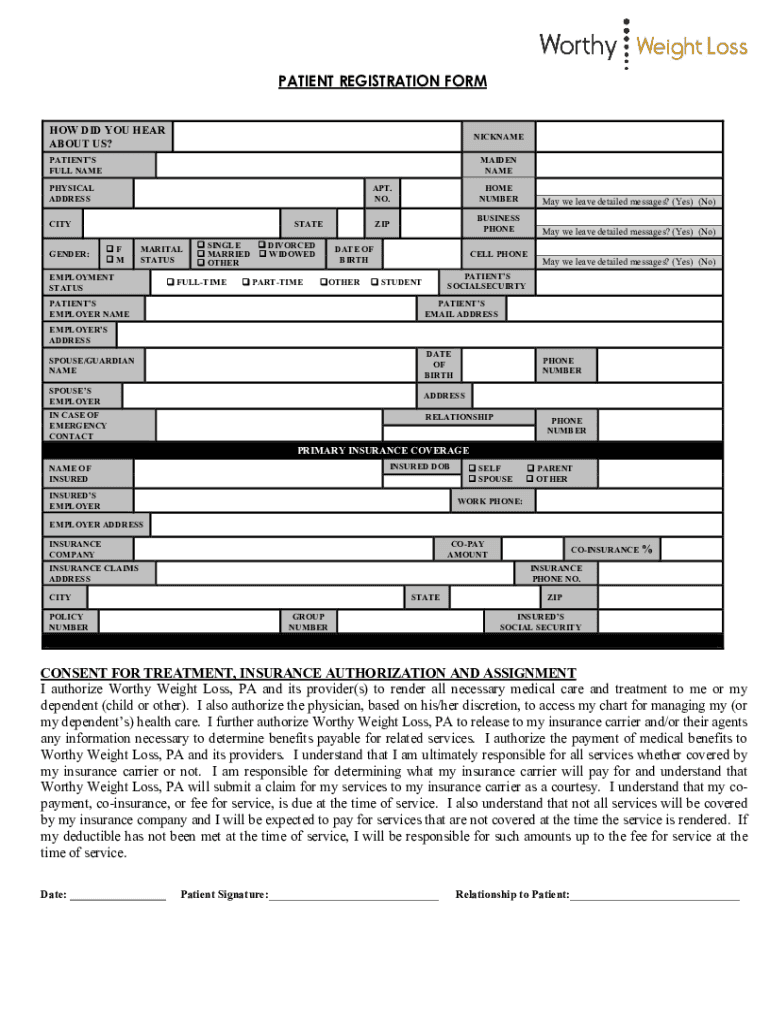Get the free PATIENT REGISTRATION FORM - Worthy Weight Loss