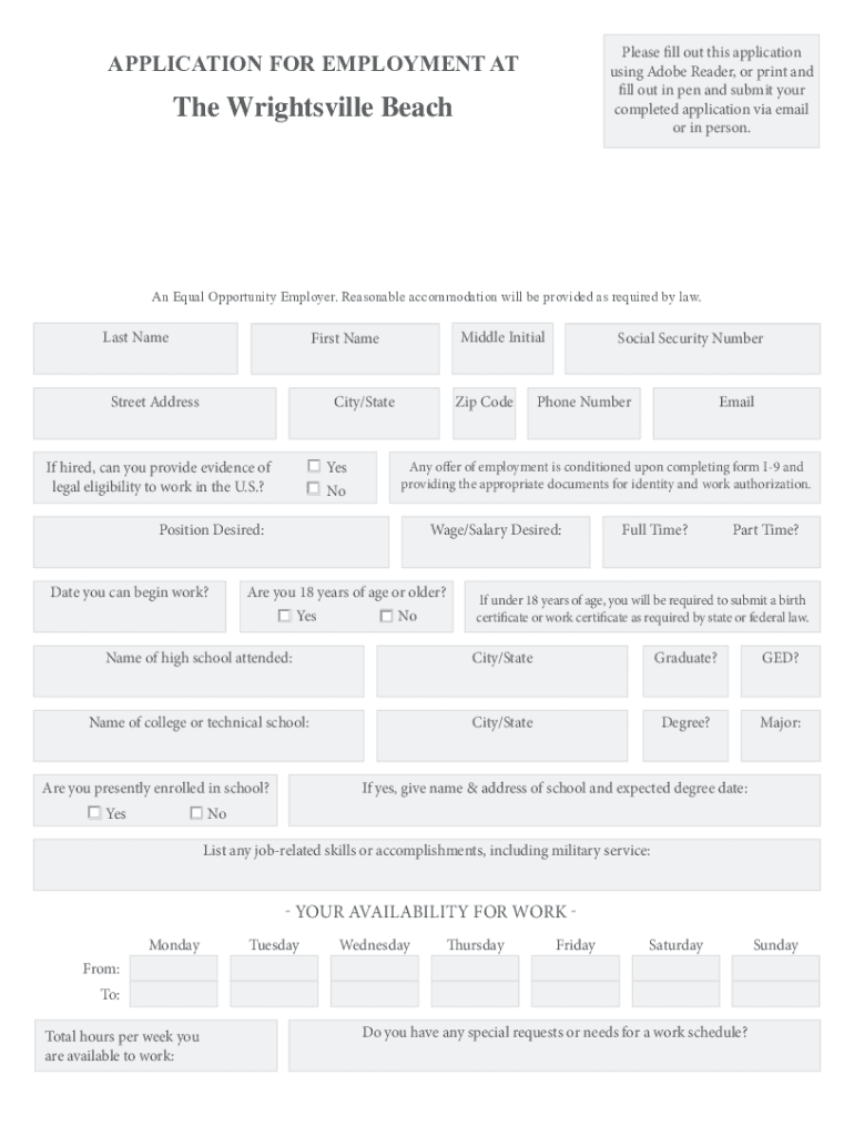 or in person. APPLICATION FOR EMPLOYMENT ATT he Wrightsville Beach