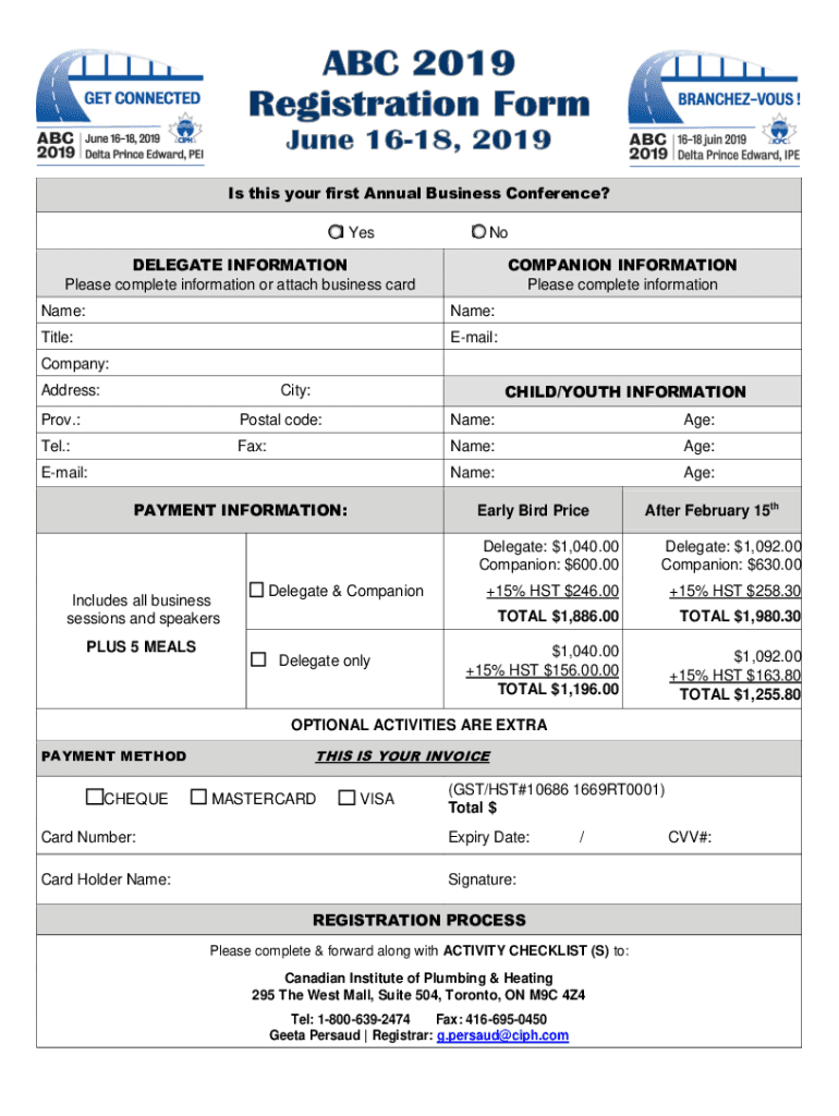 Is this your first Annual Business Conference? Yes Delegate INFORMATION Please complete information or attach business cardCOMPANION INFORMATION Please complete informational:Name:Title:Email:Company: