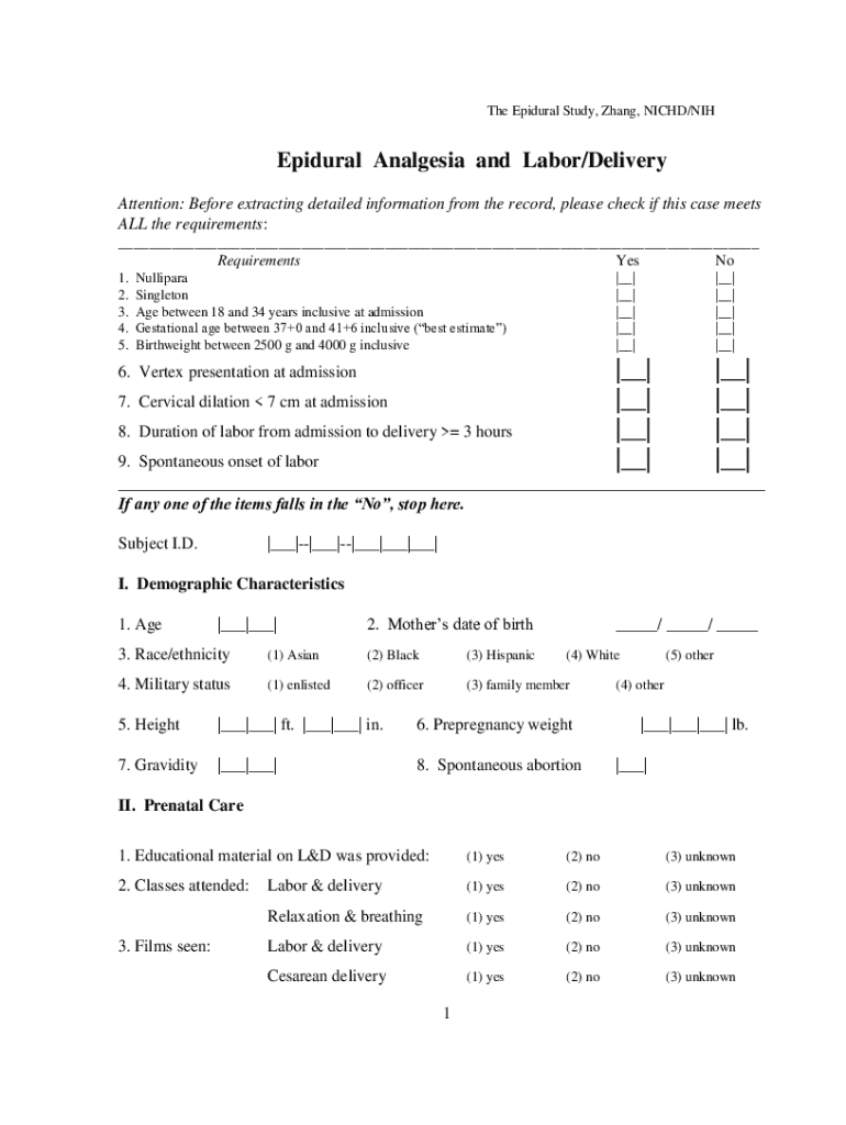 The Epidural Study, Zhang, NICHE/Epidural Analgesia and Labor/Delivery Attention: Before extracting detailed information from the record, please check if this case meets ALL the requirements: Requirements