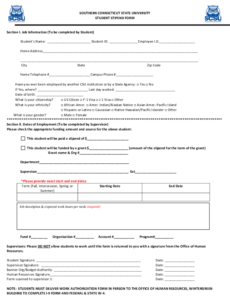 Get the free SOUTHERN CONNECTICUT STATE UNIVERSITY STUDENT STIPEND FORM ...