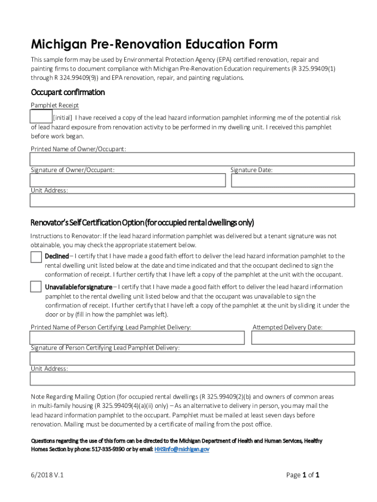 Get the free Online Michigan Pre-Renovation Education Form ...