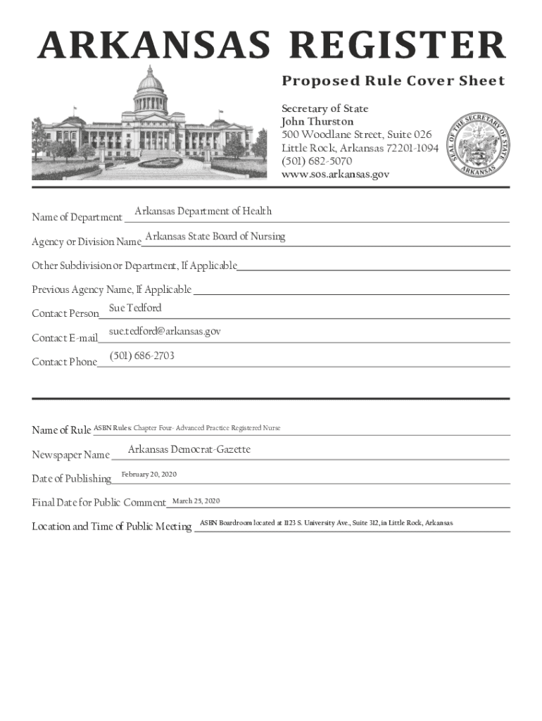 Proposed Rule Cover Sheet Secretary of State