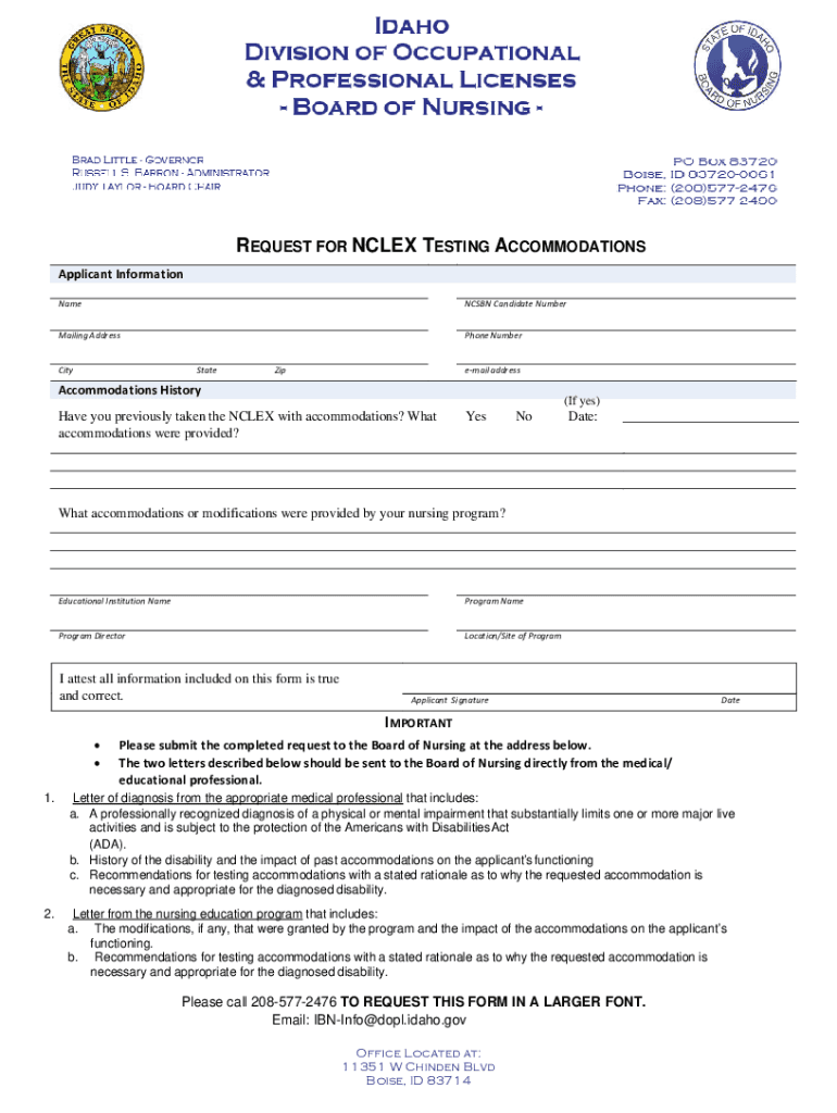 Get the free NCLEX Accommodation Request - ibn idaho