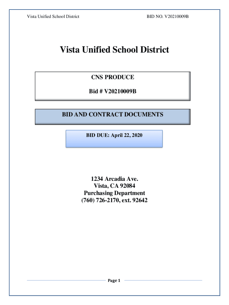 Vista Unified School District BID NO. V20210009BVista Unified School District