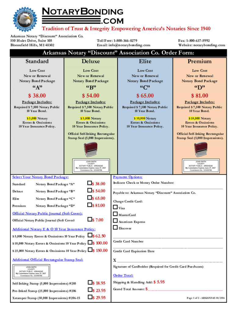 NOTARYBONDING .COM Tradition of Trust & Integrity Empowering Americas Notaries Since 1940 Arkansas Notary Discount Association Co. 550 Let Drive, Suite 105 Bloomfield Hills, MI 48302Toll Free: 18003668279