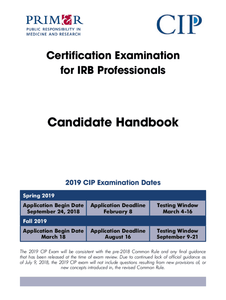 for IRB ProfessionalsCandidate Handbook2019 CIP Examination Dates
