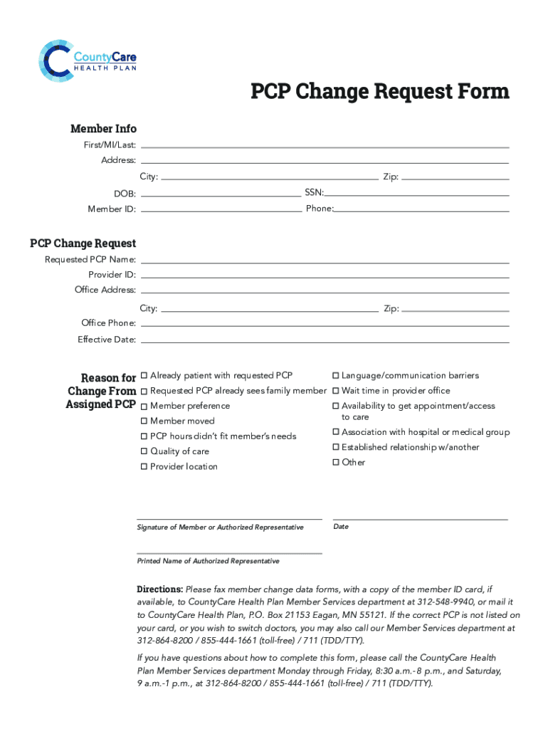 SSN:DOB:Phone:Member ID:PCP Change Request