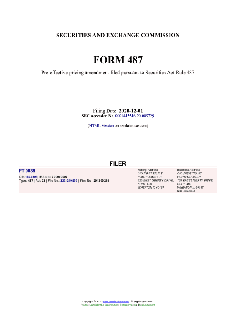 SECURITIES AND EXCHANGE COMMISSIONER 487 Effective pricing amendment filed pursuant to Securities Act Rule 487Filing Date: 20201201SEC Accession No. 000144554620005729 (HTML Version on secdatabase.com)FILER