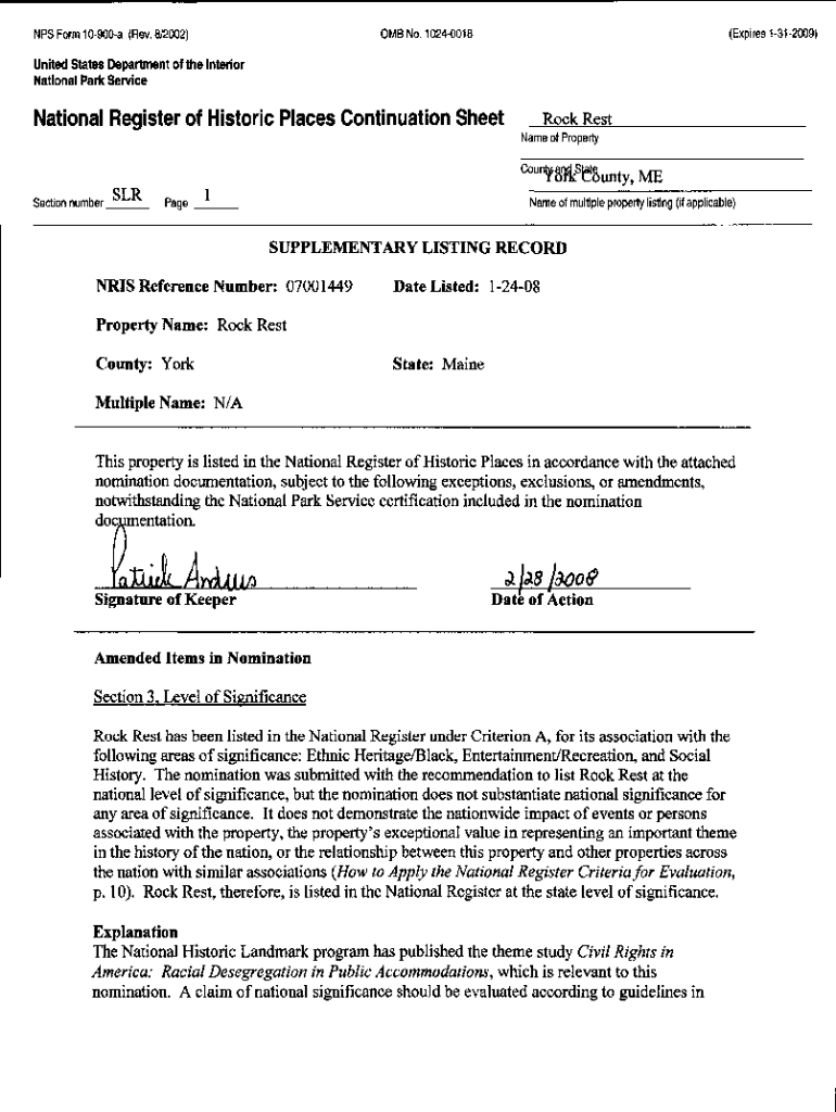 Get the free National Register of Historic Places Continuation Sheet Rock Rest