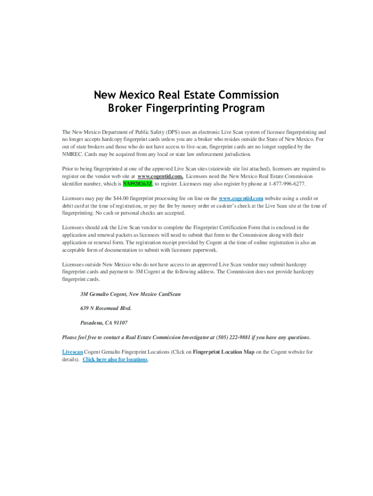 The New Mexico Department of Public Safety (DPS) uses an electronic Live Scan system of licensee fingerprinting and