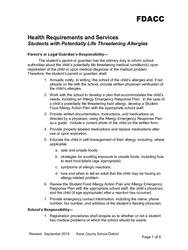 Get the free Health Requirements and Services Students with Potentially ...