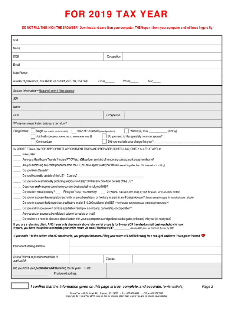 (It is not that bad, honest. Much of it will be left blank.)1)All clients fill out pages 28. Travelers, business and/or rental owners will need to fill out appropriate