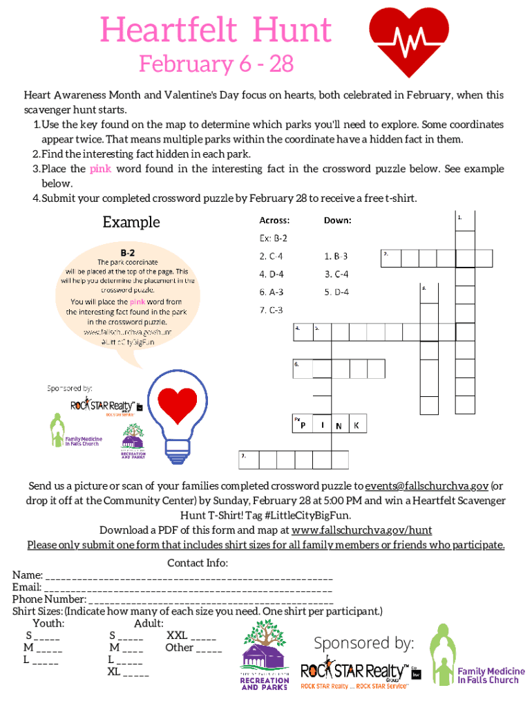 Heartfelt Hunt February 6 28 Heart Awareness Months and Valentine's Day focus on hearts, both celebrated in February, when this scavenger hunt starts. 1. Use the key found on the map to determine