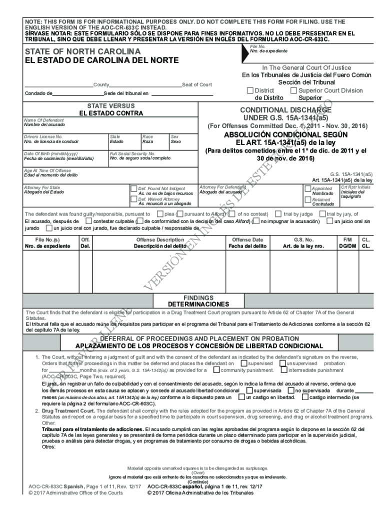 Get the free ENGLISH VERSION OF THE AOC-CR-633C INSTEAD ... - NCcourts