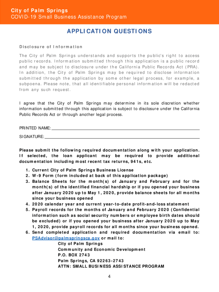 For City of Palm Springs Businesses Impacted by COVID19The City of Palm Springs (City) recognizes