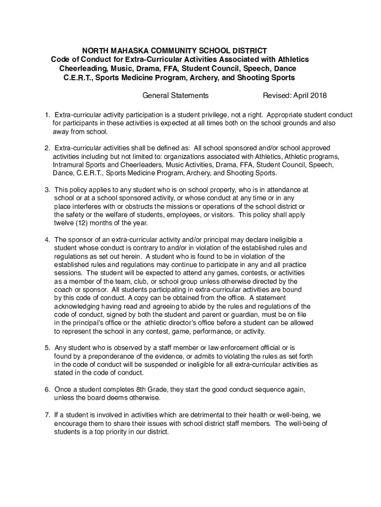 Code of Conduct for ExtraCurricular Activities Associated with Athletics