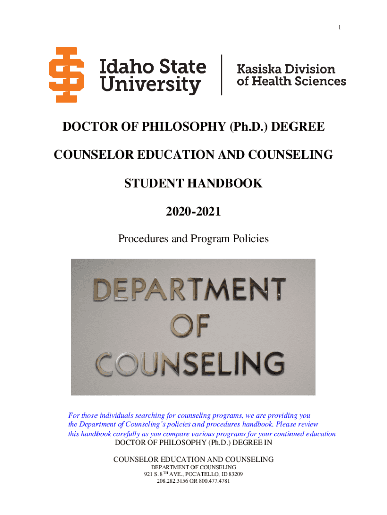 Procedures and Program Policies those individuals searching for counseling programs, we are providing