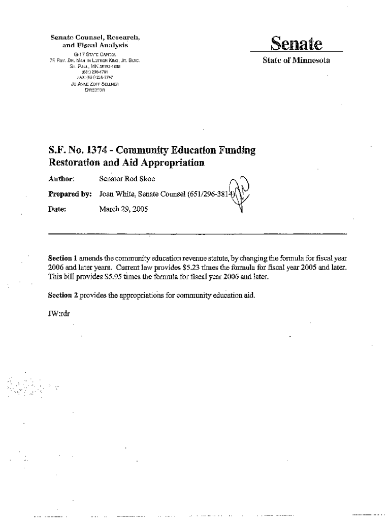 Get the free S.F. No. 1374 -Community Education ... - Minnesota Legislature