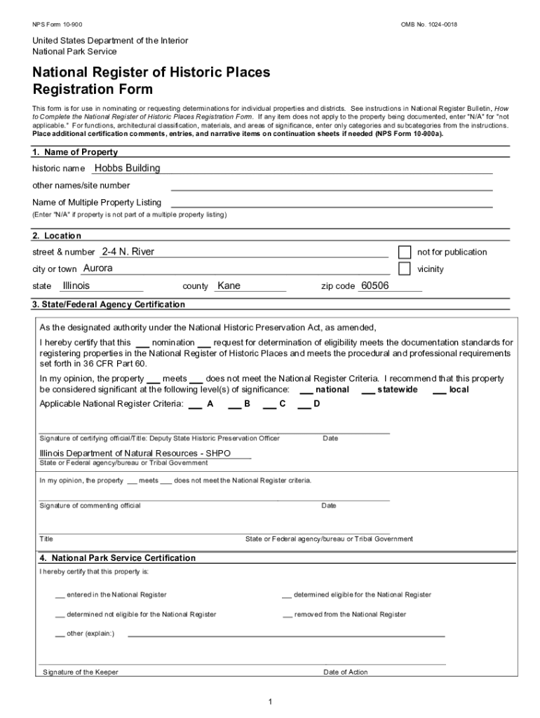 NPS Form 10900OMB No. 10240018United States Department of the Interior National Park ServiceNational Register of Historic Places Registration Form This form is for use in nominating or requesting