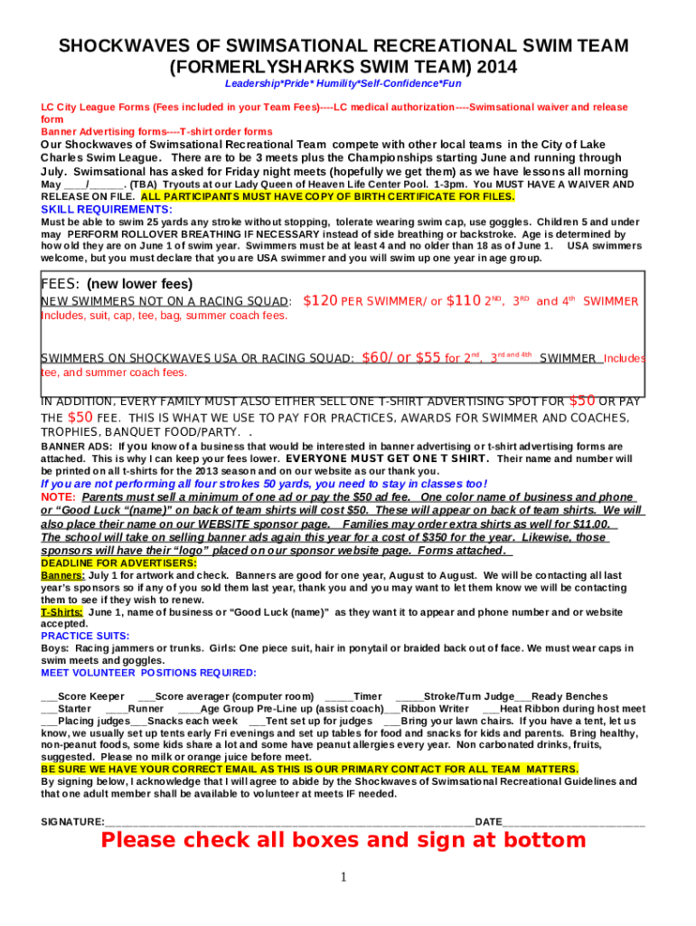 Instructions for the form Swimsational Swim School--"We Put The Fun into Learning to Swim"!