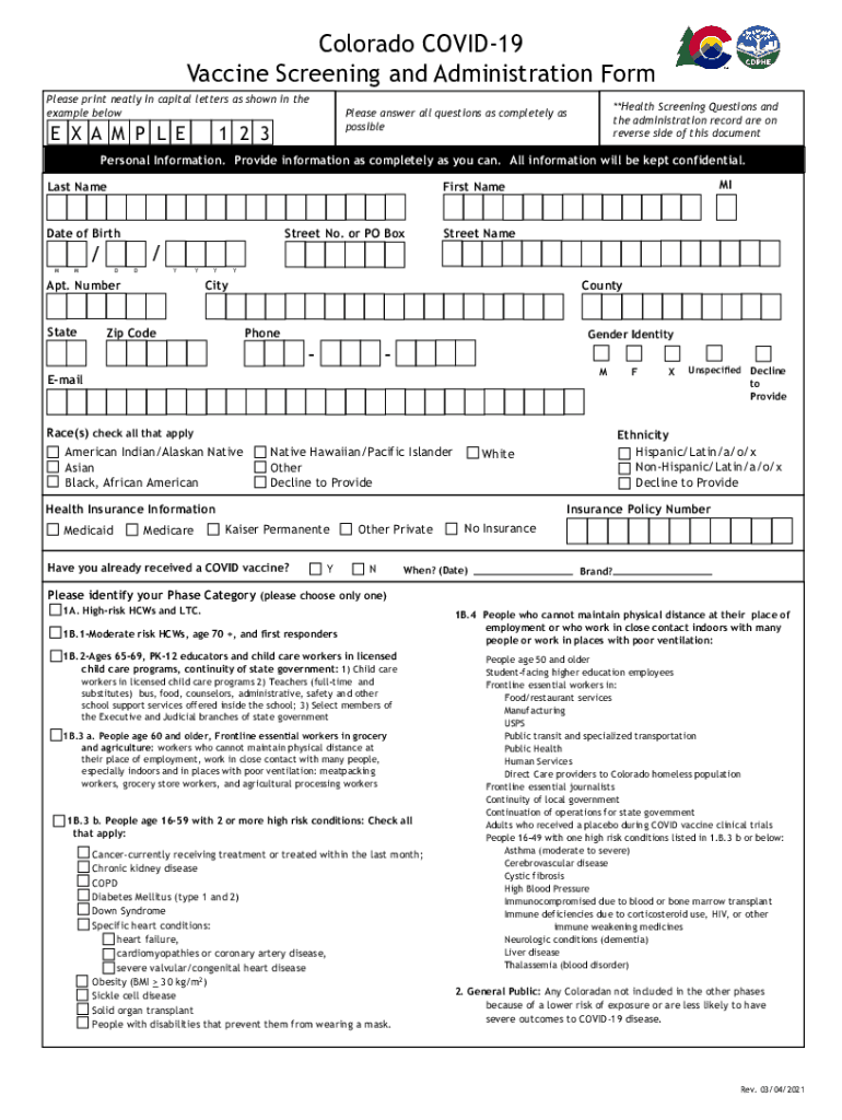 To fill out the Colorado COVID-19 vaccine form, individuals should provide personal information such as name, date of birth, and vaccination details like the vaccine type and administration date.